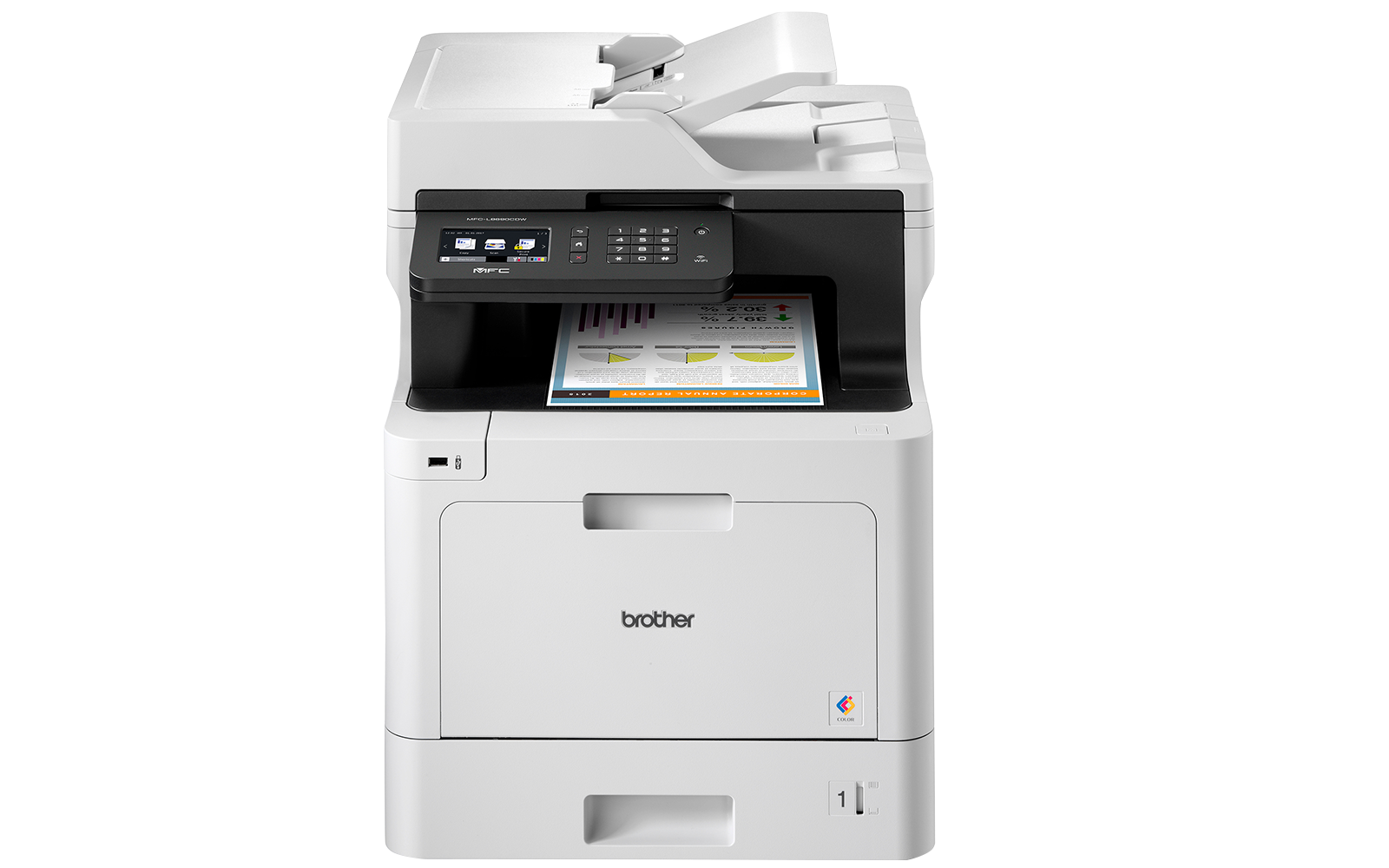 Dobbeltsidet farveprint, scan, kopi og fax op til A4 • 250-arks papirskuffe, 50-arks dokumentføder. Printhastighed op til 31 sider pr. minut i s/h og farve • Print fra smartphone/tablet via Brothers appen iPrint&Scan • LAN/Wi-Fi/USB • Mulighed for store tonere