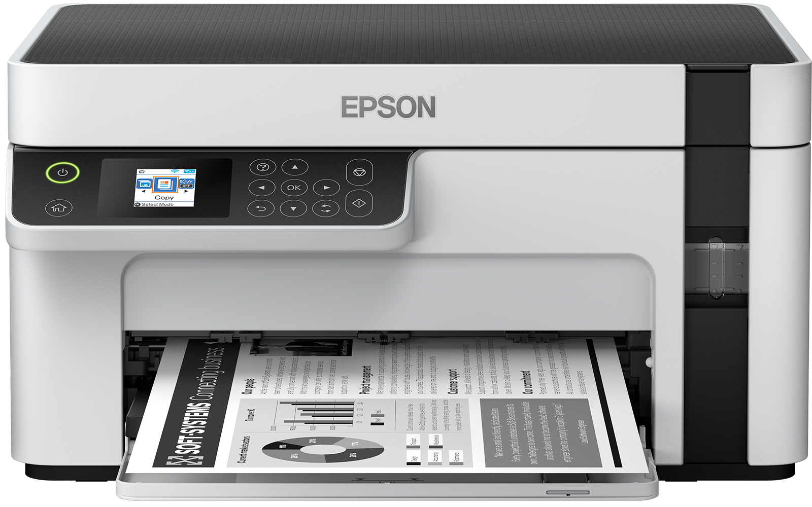 A4 Mono-inkjet – Scanningsfunktion – USB/Wi-Fi/Epson E-mail Print – Udskiftningshastighed: 15 sider pr. minut (ISO) – 8 sekunder på første side – Blæktank til sort farve – 1440×720 dpi
