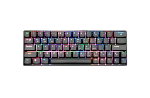FOURZE GK60. Tastatur formfaktor: 60%, Forbindelsesteknologi: Kabel & trådløs, Enhedsgrænseflade: USB + Bluetooth, Tastatur nøglekontakt: Mekanisk, Tastaturopsætning: QWERTY, Antal taster på tastatur: 65. Type af baggrundslys: RGB LED. Kabellængde: 1,7 m. Anbefalet brug: Spil. Produktfarve: Sort